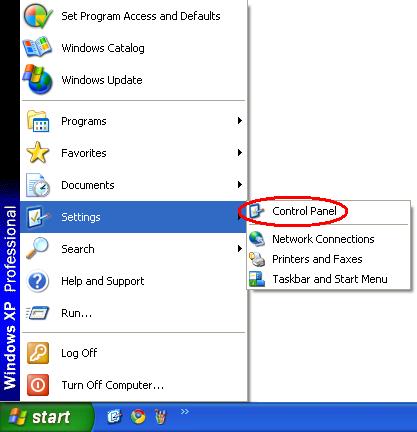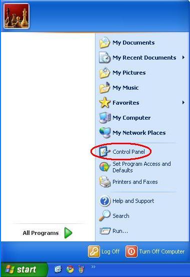 в този случай първо кликвате на „Settings” и след това на „Control Panel”.