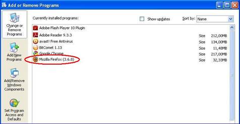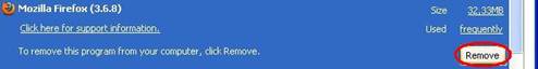 ·                           Ако има – кликвате веднъж с левия бутон на мишката върху надписа „Mozilla Firefox” и след това кликвате вдясно на бутона „Remove ,