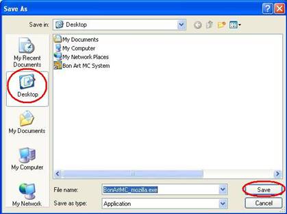 (1)   Отивате на „Desktop”-а и намирате файла, който току-що изтеглихте: BonArtMC_mozilla.exe